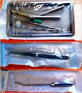 使用する器具は、患者様別にすべてパックしてあります。 これにより滅菌された器具が汚れる心配はありません。