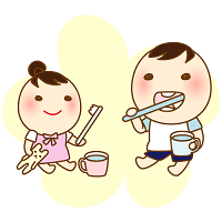 大人がお手本を見せて一緒に磨くと良いでしょう。 ぶくぶくうがいができるようになれば一人磨きに挑戦してみましょう。
