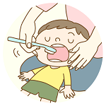 3~4歳を過ぎると何でも自分でしたがりますので、 正しい磨き方の練習をしていきましょう。 歯ブラシの持ち方も教えてあげてください。 ただし、完全に一人で磨けるようになるまでは、 保護者の仕上げ・点検磨きを忘れずに!